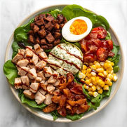 Turkey, hard boiled eggs, corn, bacon, gorgonzola cheese, mixed greens & balsamic vinaigrette