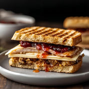 Oven roasted turkey, cranberry sauce, mayo and Swiss cheese melted on country white bread