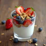 Made with vanilla yogurt, fresh berries and granola.
