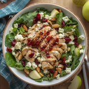 Grilled Chicken, mixed greens, dried cranberries, toasted almonds, gorgonzola cheese, green apples & fat free raspberry vinaigrette